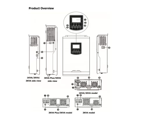 - Configuración Flexible: Prioridad de entrada AC o solar ajustable mediante pantalla LCD.